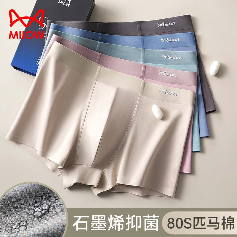 2025新款 男生纯棉全棉抑菌裆四角裤 男式 平角短裤 猫人男士 男款 内裤