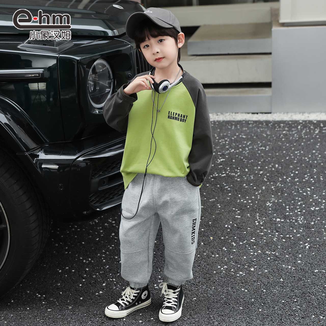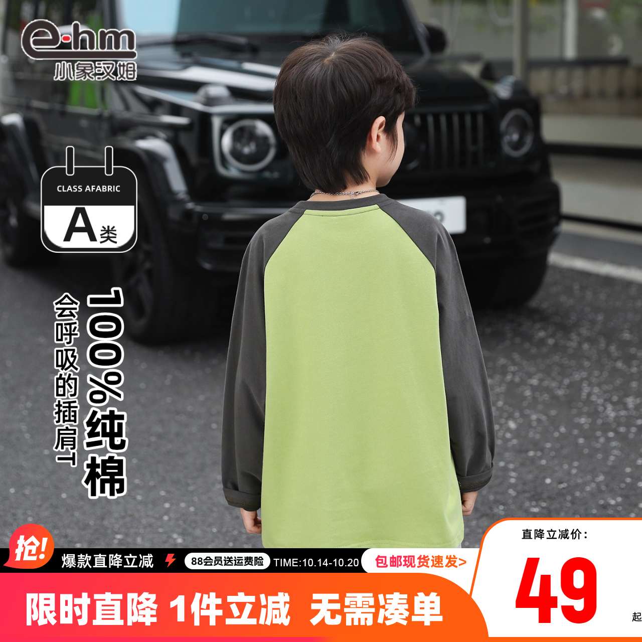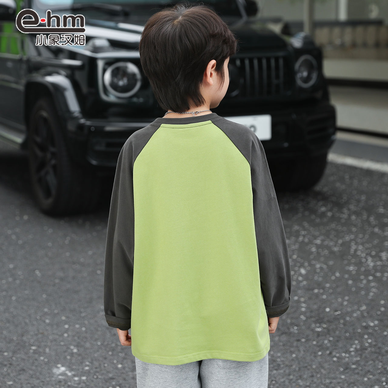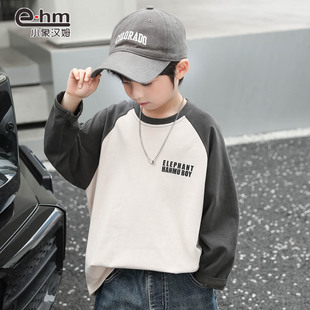 男童长袖 新款 T恤纯棉拼接款 2025秋装 中大童A类 打底衫 小象汉姆童装