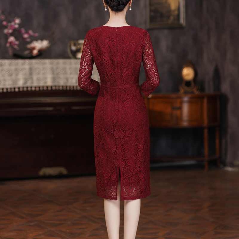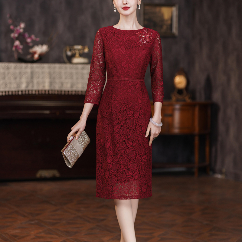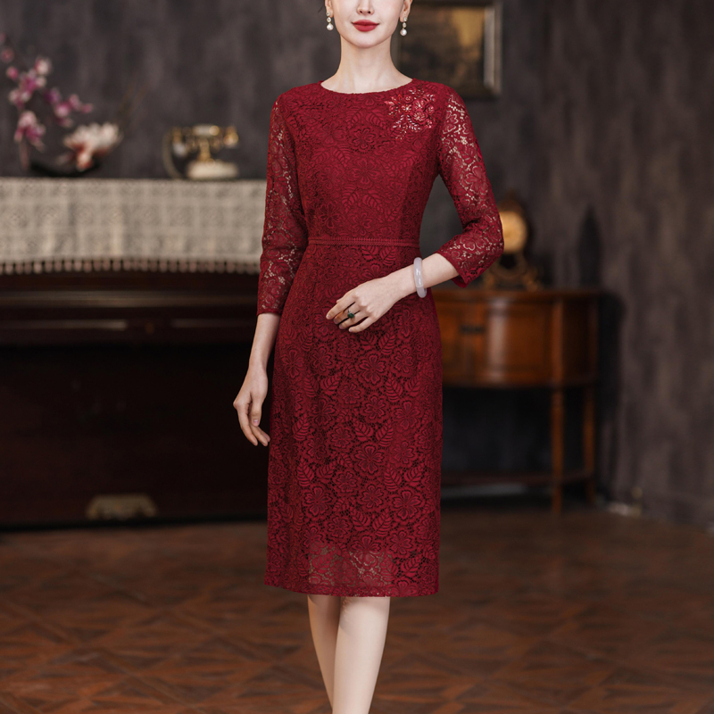 创意狐礼服裙女宴会气质中长款 婚礼婚宴妈妈小礼裙连衣裙婆婆晚装