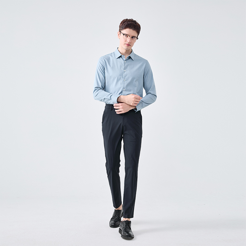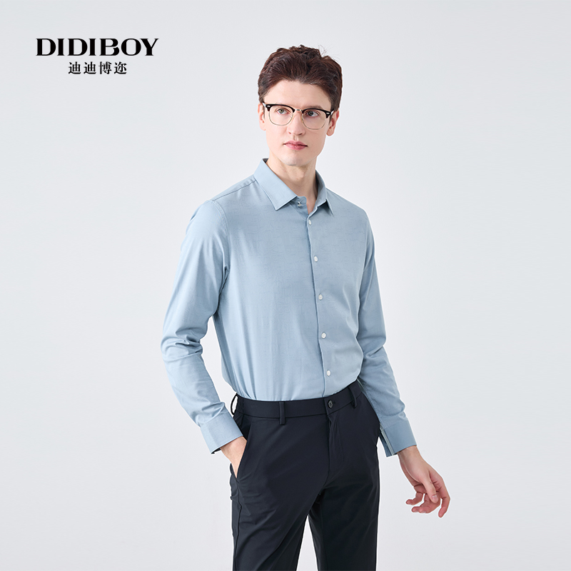 罗蒙男士 长袖 衬衫 工装 竹纤维免烫 秋季 易打理商务衬衣 直降