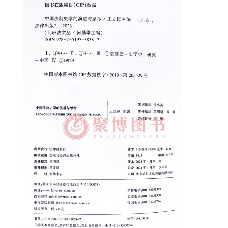 王立民 主编 社 中国法制史学 9787519738587 法律出版 演进与思考 中国法制史学史通史 2023新书 比较法文丛