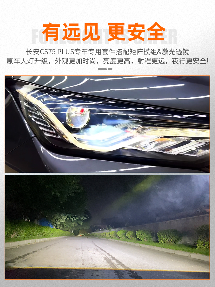 精刚双光透镜适用13 长安CS75plus原车大灯升级矩阵激光大灯 23款