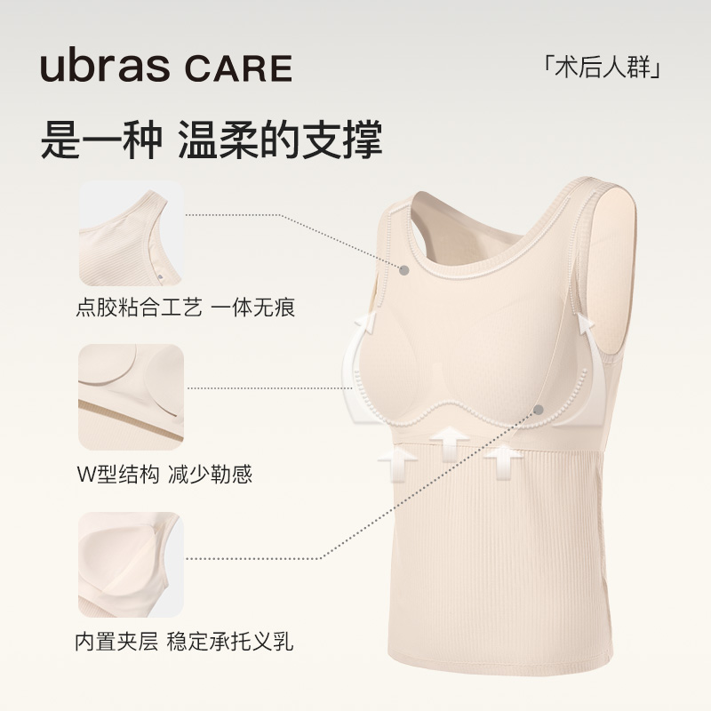 ubras in宽肩背心可放义乳内衣内搭 CARE益彼乳腺术后专用罗纹bra