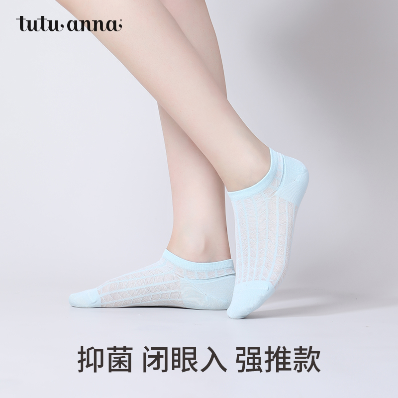 tutuanna船袜女夏 纯色不掉跟女袜 凉感抑菌女士透气无骨船袜薄款