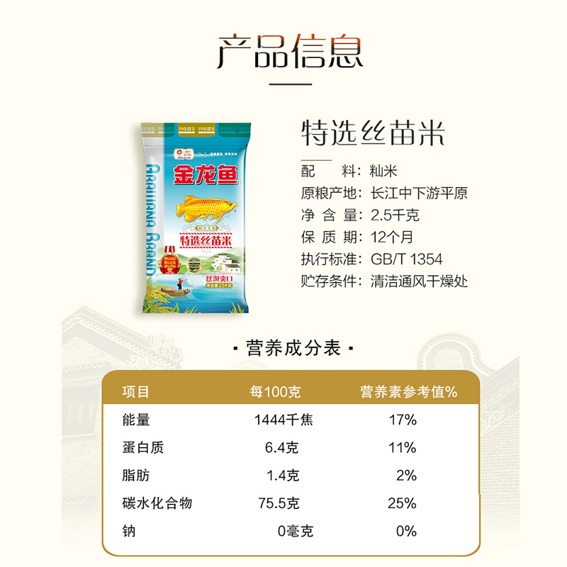金龙鱼特选丝苗米2.5kg 6整箱家用大袋整箱发货团购优质长粒香米