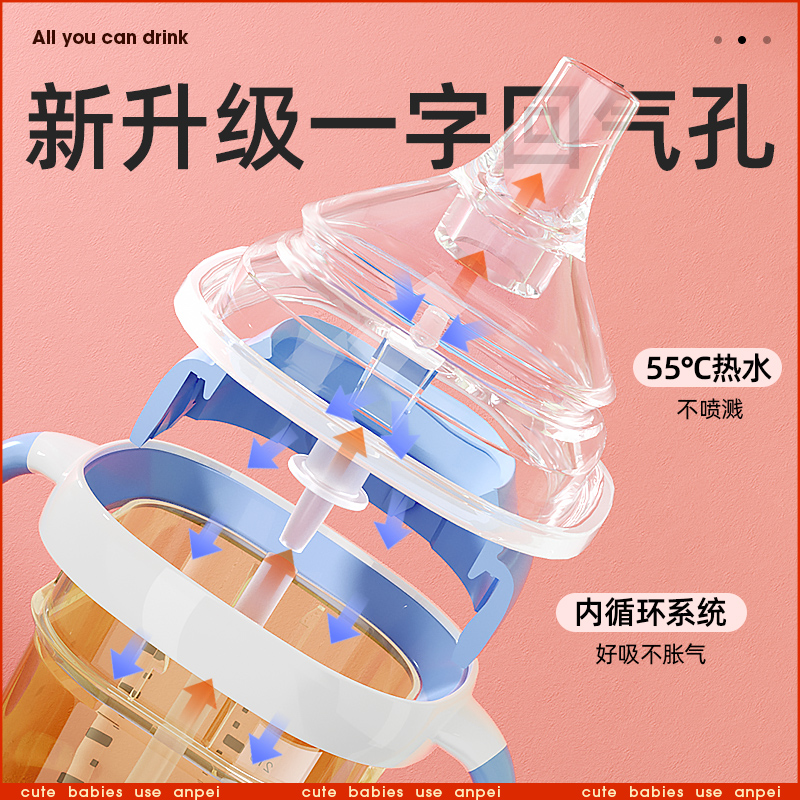 杯具熊儿童保温杯配件复古口袋款 吸嘴吸管 学饮直饮防呛硅胶原装