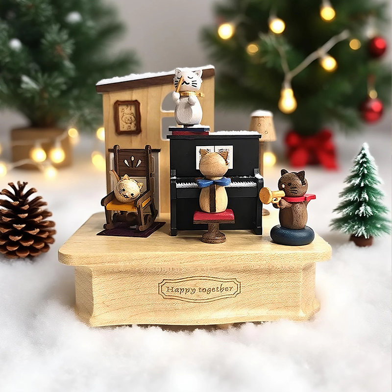 森活木趣猫咪弹钢琴摆件音乐盒刻字八音盒女孩七夕生日礼物女生