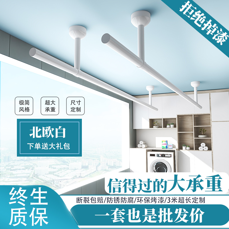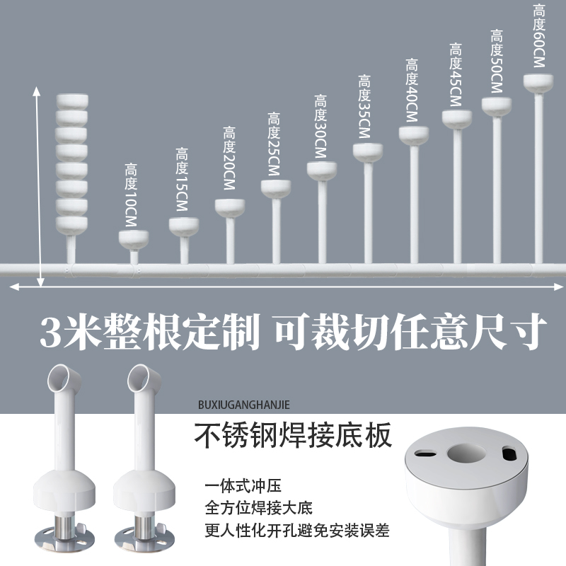 阳台不锈钢固定式 晒衣架凉衣杆加厚挂衣杆单杆家用 晾衣杆白色顶装