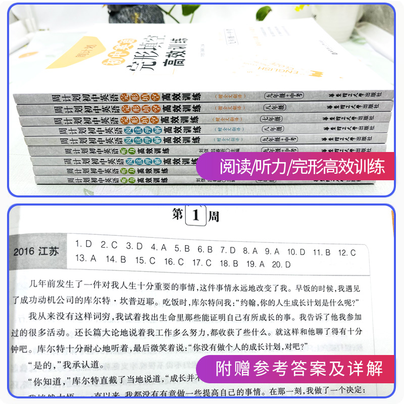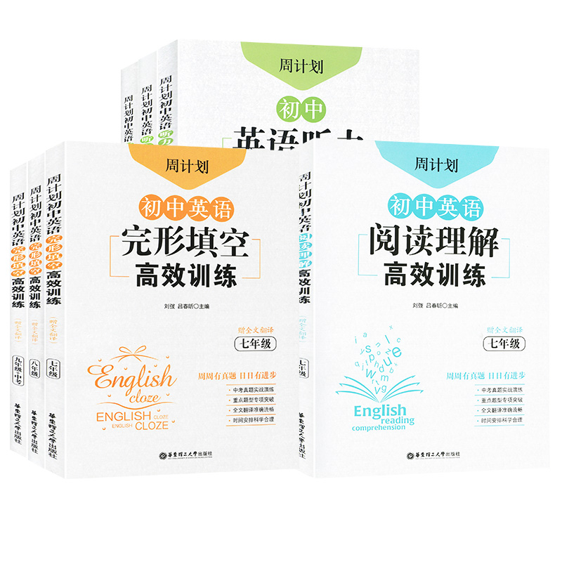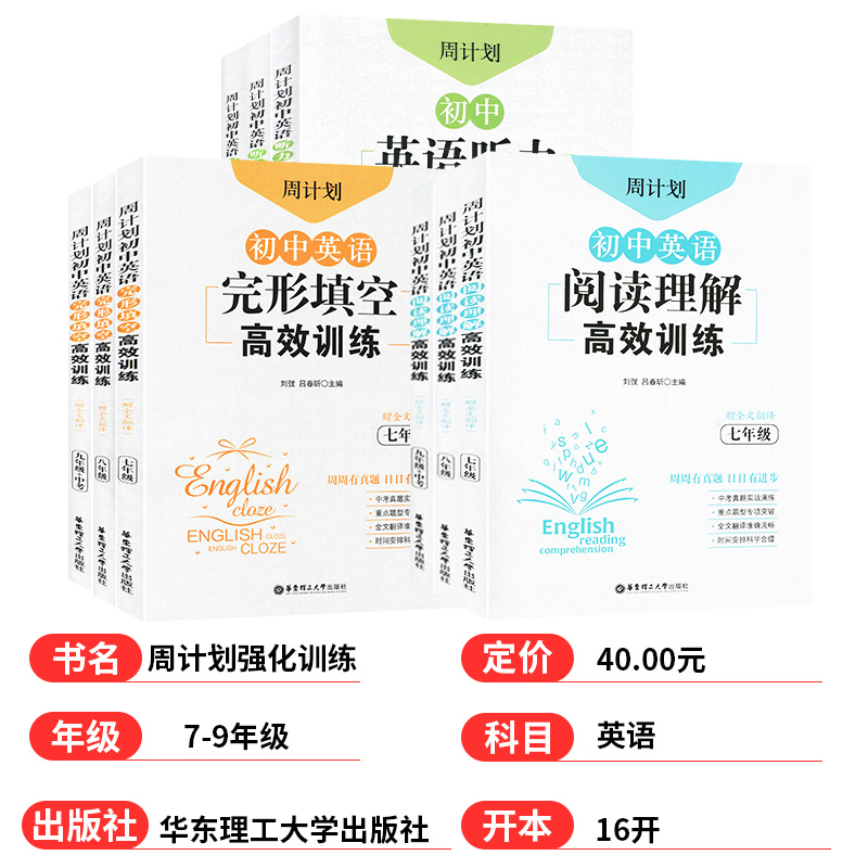 2025版 周计划初中英语阅读理解完形填空听力高效训练七7年级八8年级九9年级英语知识专项训练答题技巧阅读理解完形填空专项训练书