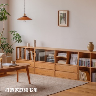 MUMO木墨 实木书柜置物柜储物整墙展示自由组合柜子 半墙边柜