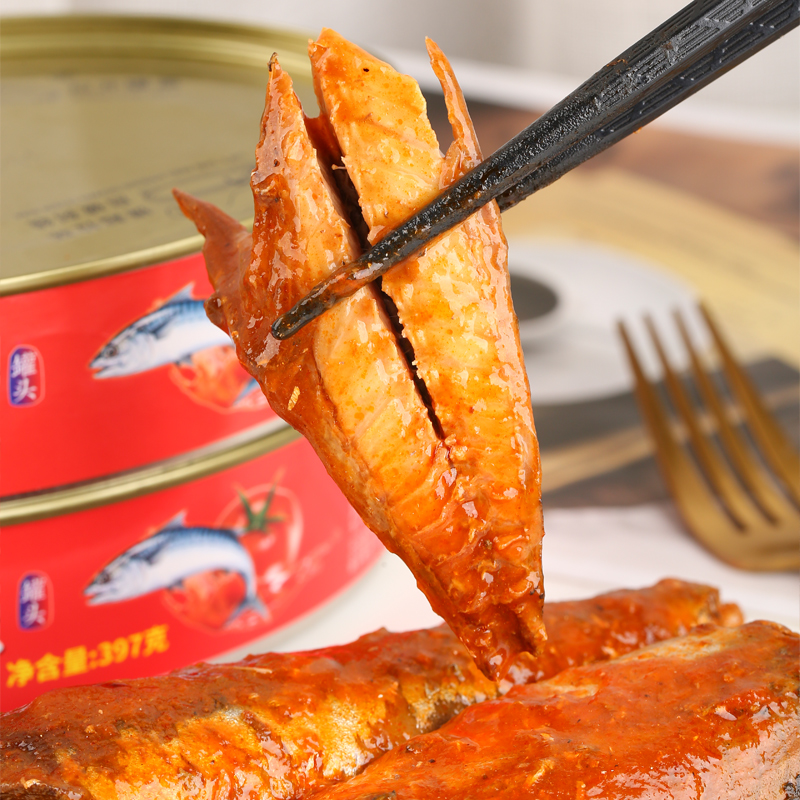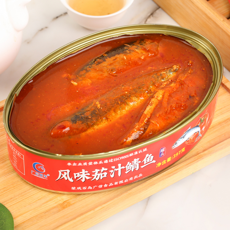 广信联华风味茄汁鲭鱼罐头即食青鱼青花鱼鲐鲅鱼类罐头397g大椭圆