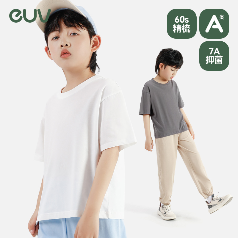 白色上衣男女孩中大童全棉夏季 男童女童薄款 t恤 儿童纯棉短袖 euv