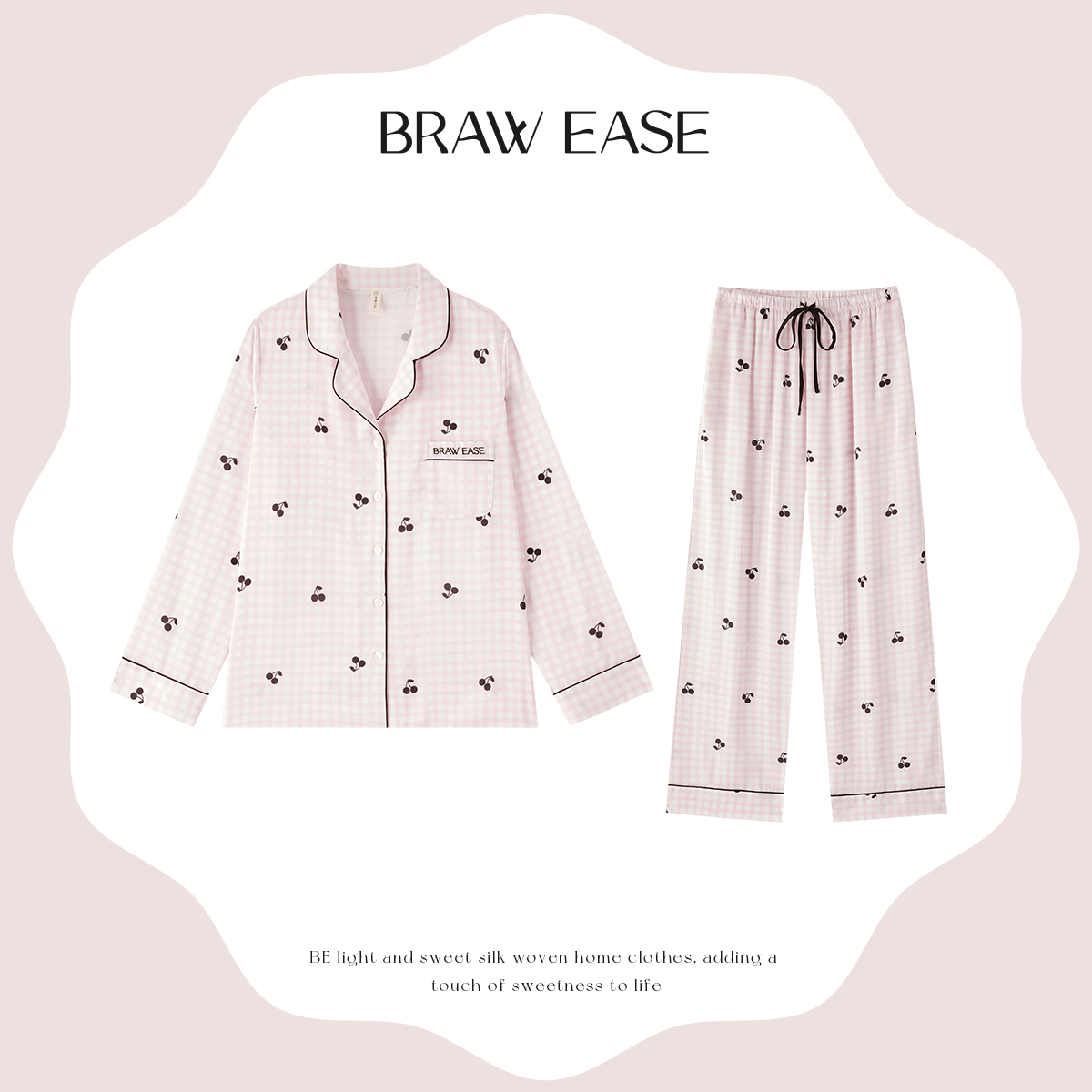 2025新款 秋春家居服秋季 丝绸秋冬 秋天带胸垫格子长袖 冰丝睡衣女款