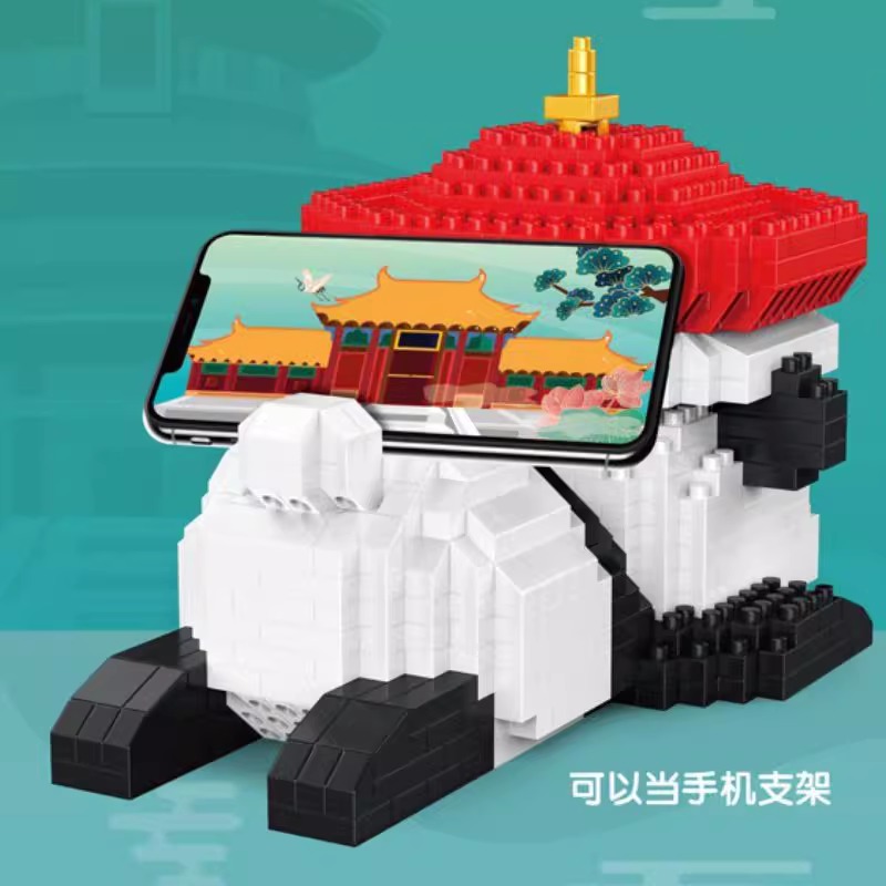 国潮招财醒狮大熊猫积木儿童益智拼装 礼物玩具成都基地纪念品礼品