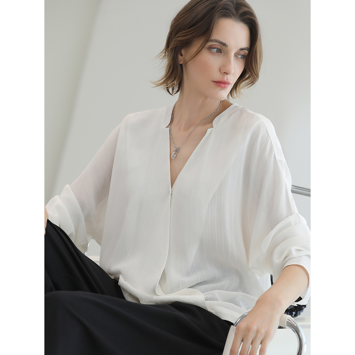打底棉布衬衫 2025春秋新款 优雅衬衣绣花上衣立领长袖 女时尚 女 新款