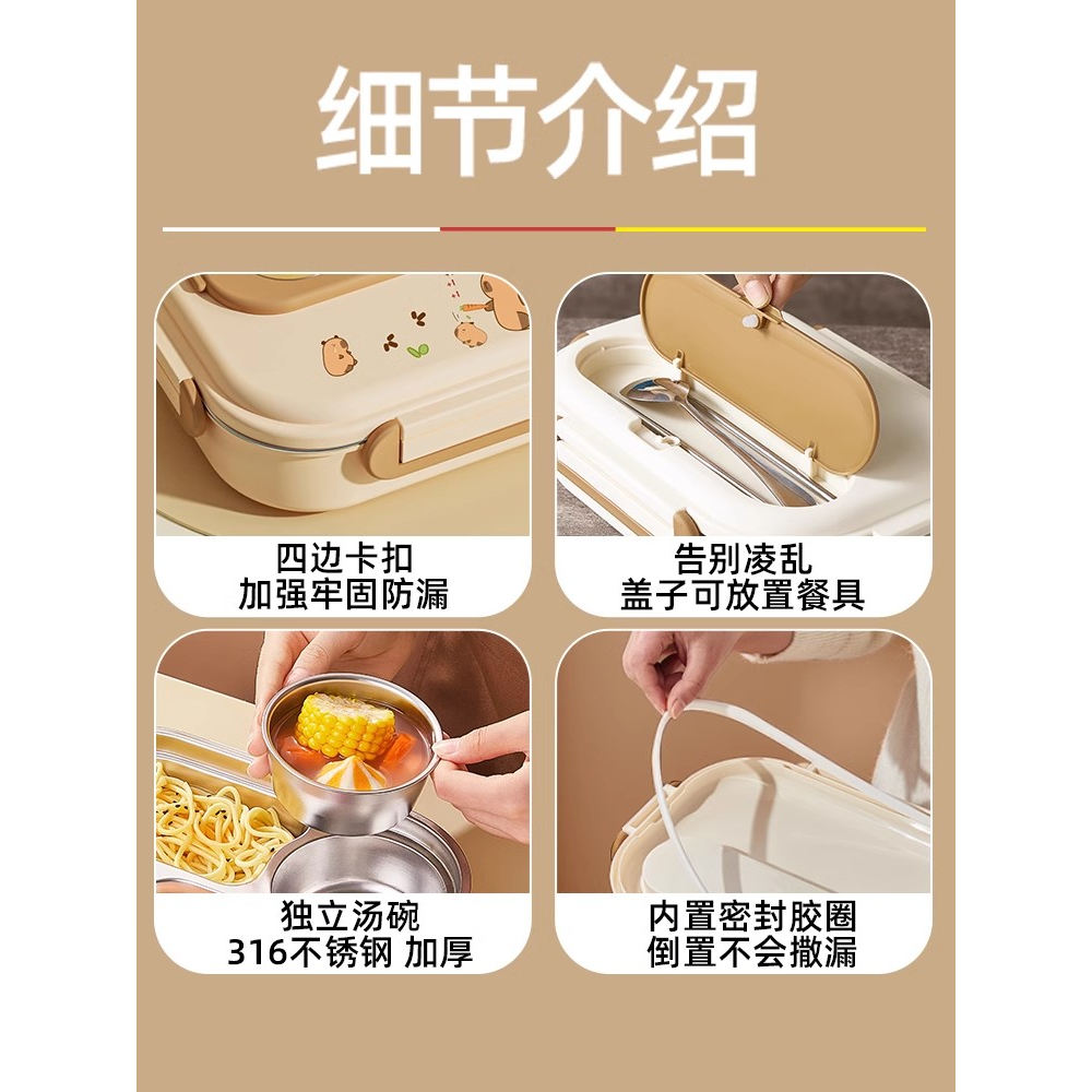 316不锈钢儿童饭盒小学生专用保温便当盒卡皮巴拉餐盒分格食品级
