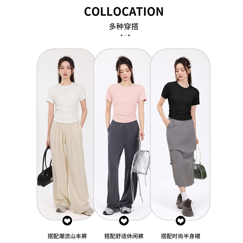 辣妹风正肩短袖 爆夏 紧身T恤 上衣女2025新款 KV真维斯浅花灰色短款