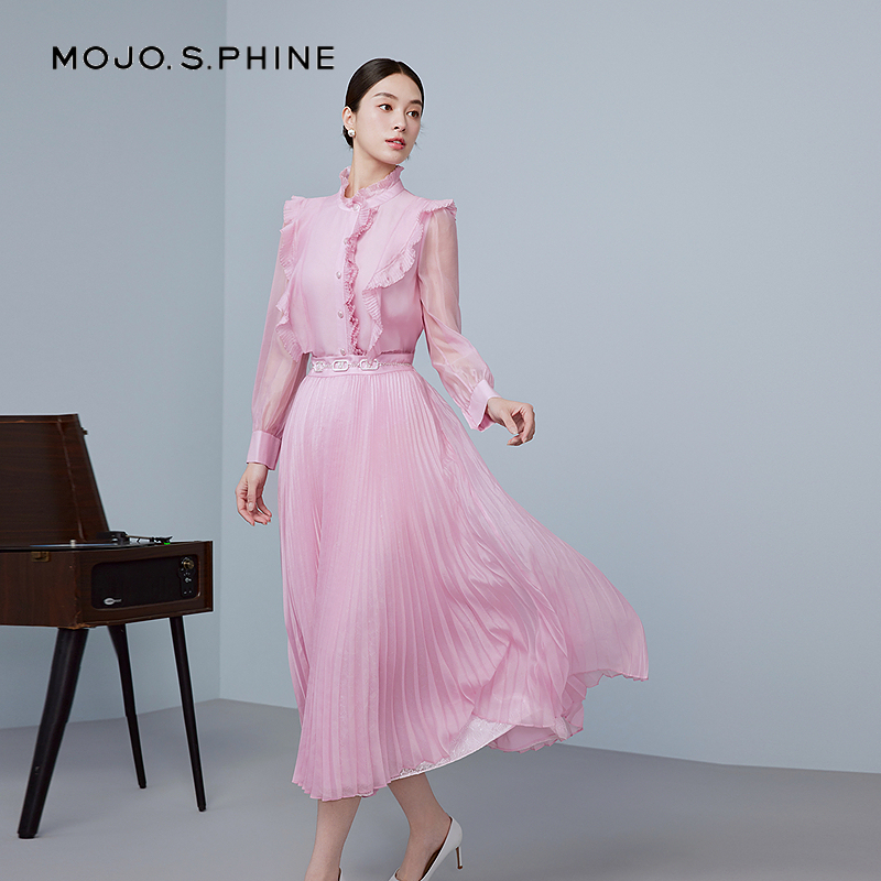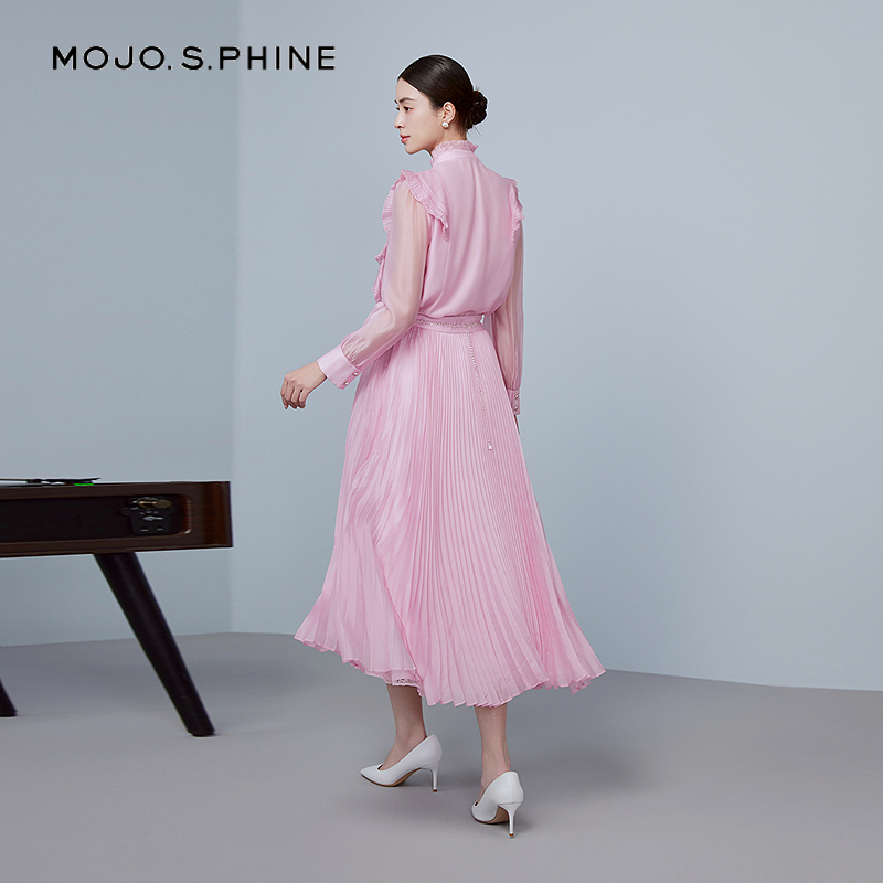 MOJO莫佐浅玫紫垂坠缎感半身裙2025新款 高级极简舒适亲肤长裙 法式