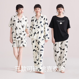 春秋棉莫代尔国风2025新款 薄家居服套装 长袖 夏季 短袖 红豆睡衣女款