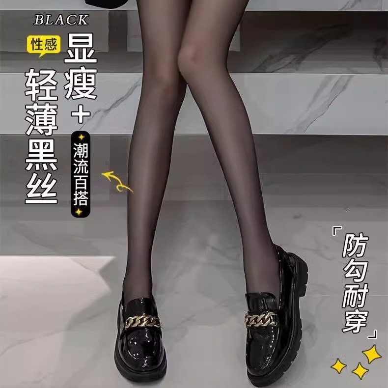 袜大码 黑色丝袜女薄款 防勾丝性感0d黑丝光腿神器纯欲风菠萝袜连裤