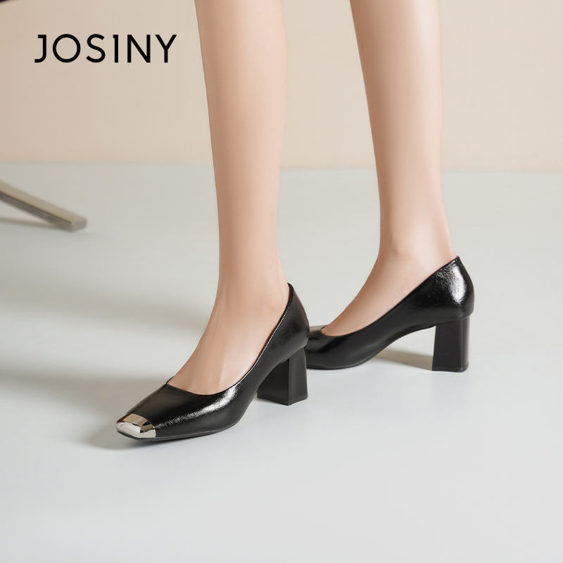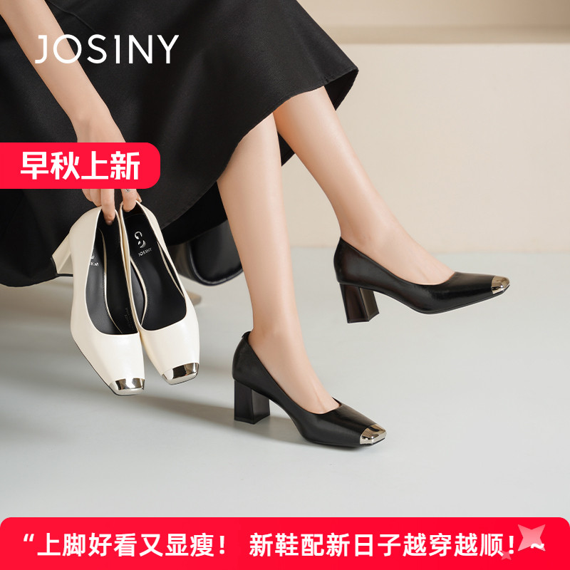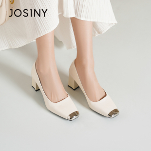 法式 新款 方头高跟鞋 气质通勤女鞋 卓诗尼粗跟单鞋 工作鞋 女2025夏季