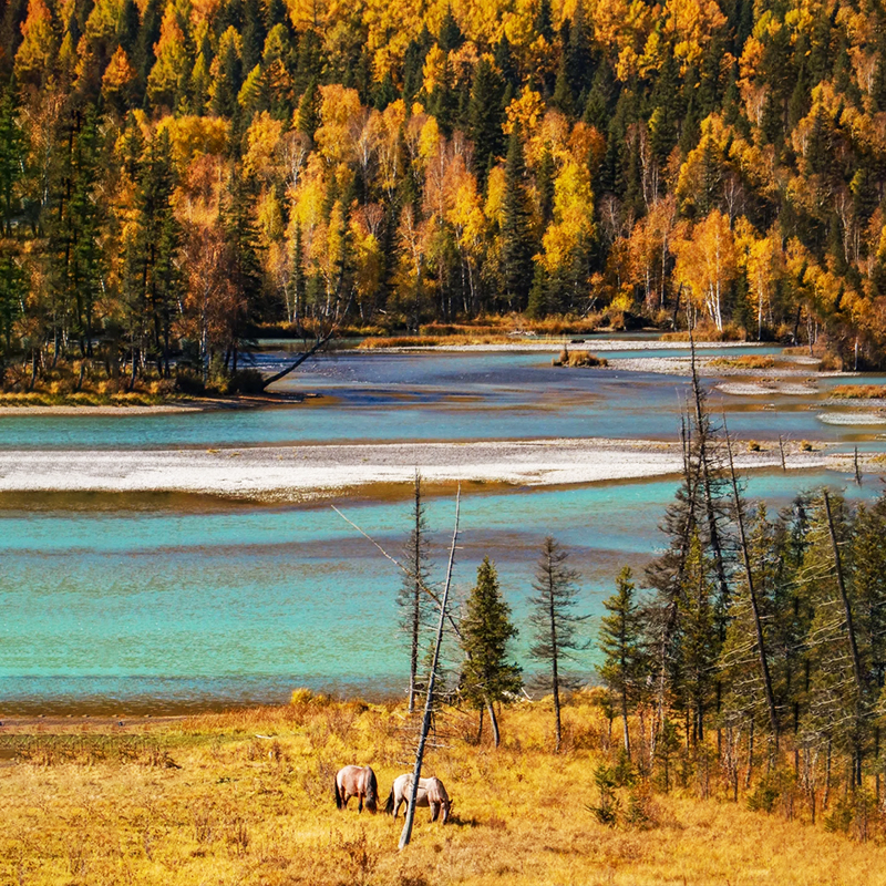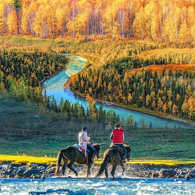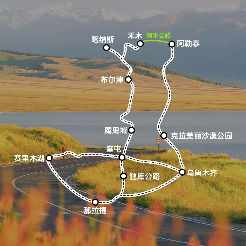 新疆旅游阿勒泰喀纳斯禾木赛湖8天跟团滑雪温泉 1车 北疆双湖1