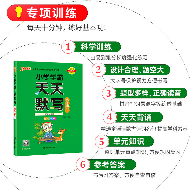 小学学霸天天默写天天计算六年级上册语文数学英语人教PASS绿卡同步专项训练竖式 口算听写本生字词语汇总练习小学语数英写字练习