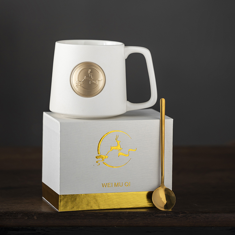 马克杯带盖勺陶瓷杯子女士新款 家用喝茶水杯男办公室咖啡杯高颜值
