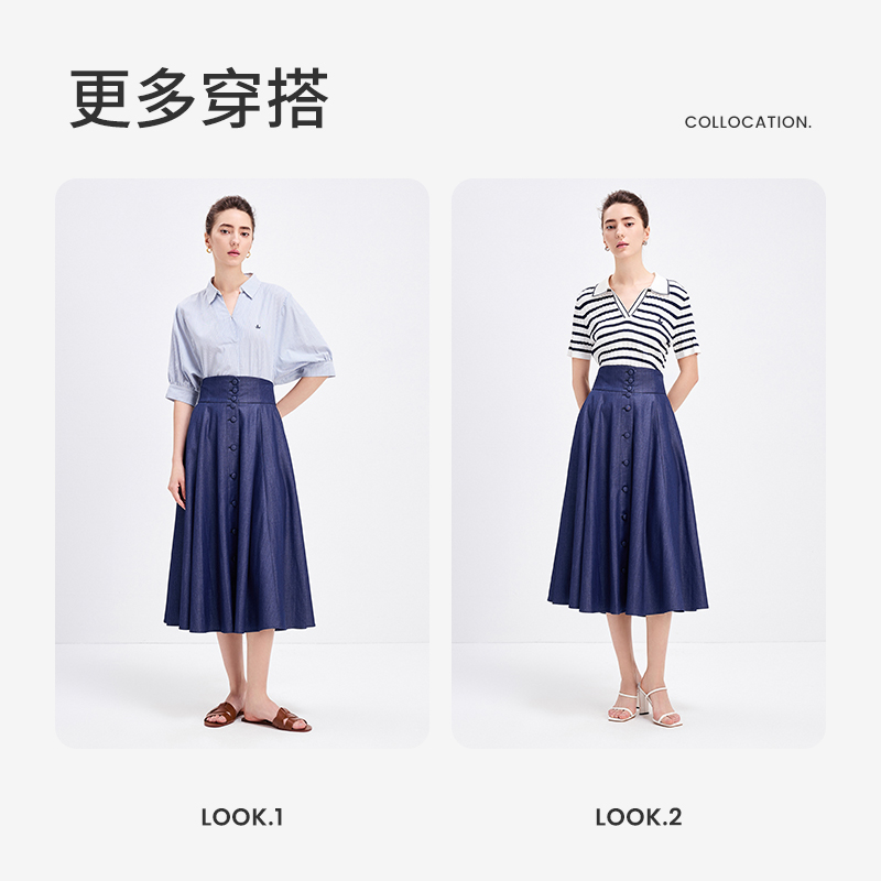 高腰梨型身材A字裙伞裙 半身裙百褶裙大码 胖mm显瘦百搭西装 中长款