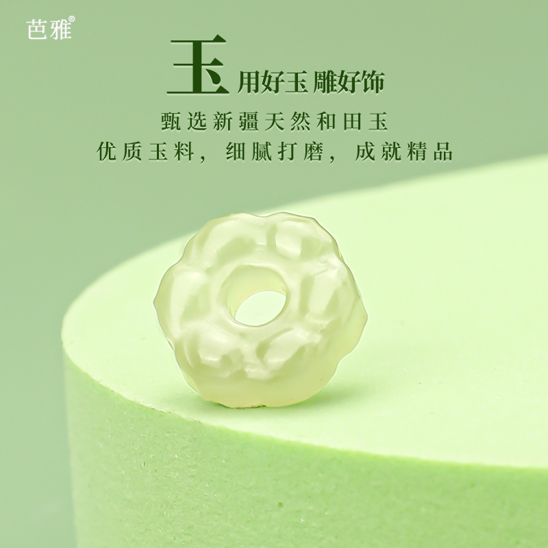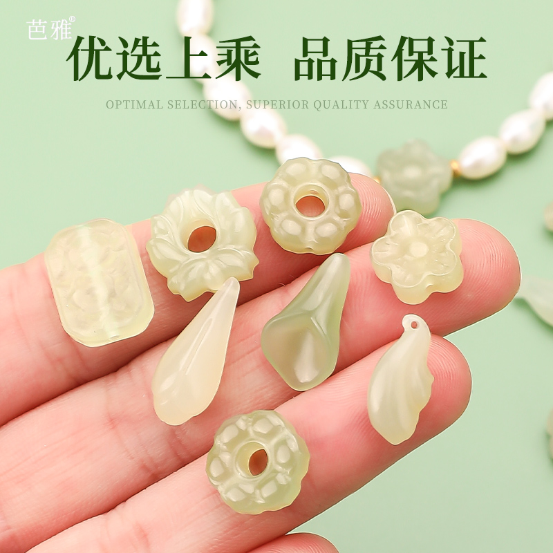 天然花朵和田玉diy配件手链手串玉石莲花珠子手机链吊坠挂件材料