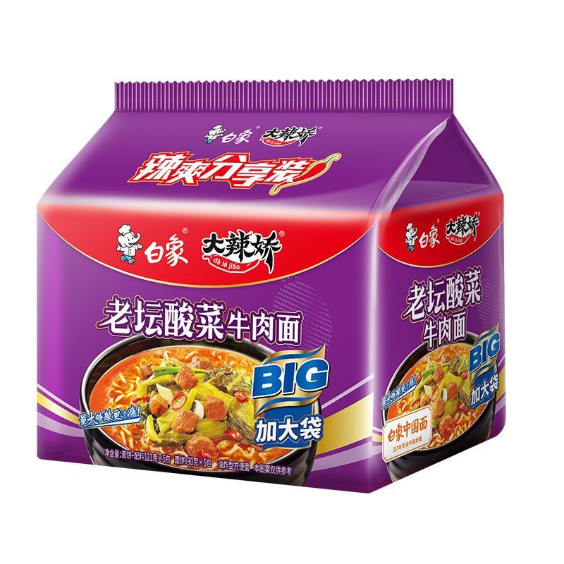 速发白象方便面麻辣香锅牛肉面大辣娇5袋BIG加大袋泡椒酸菜泡面五
