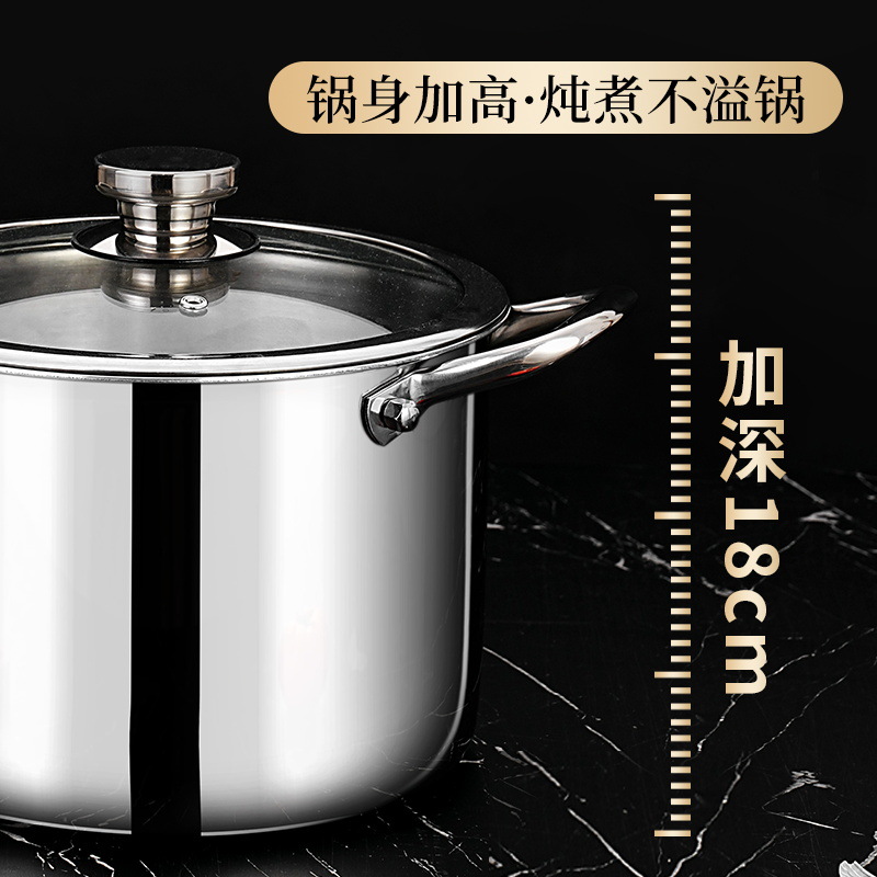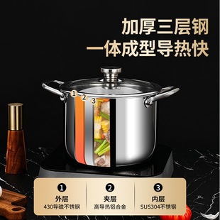 不锈钢高汤锅加厚家用无涂层蒸锅不粘炖锅双耳锅电磁炉汤锅