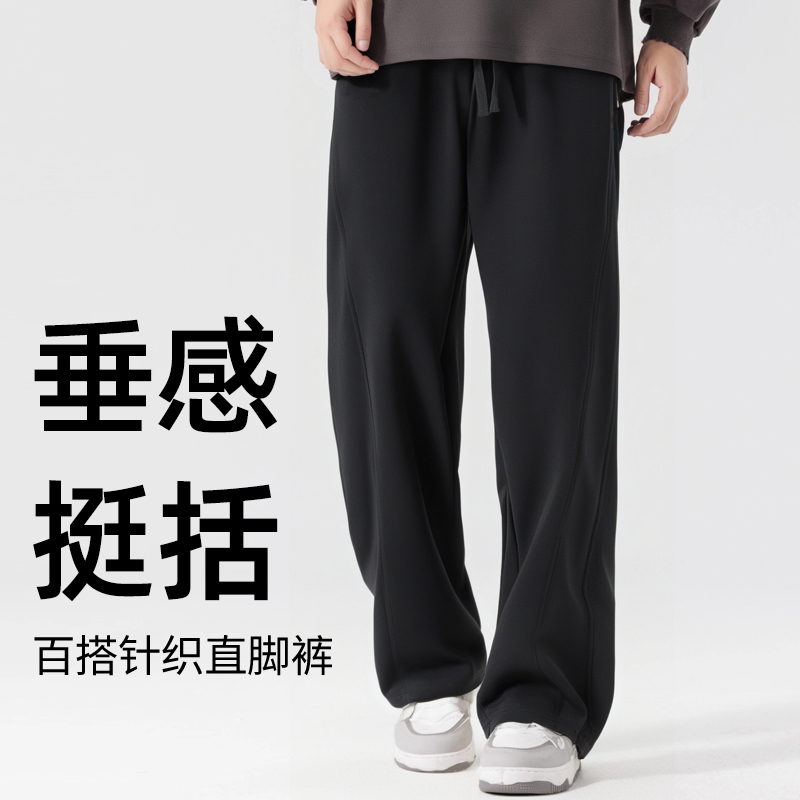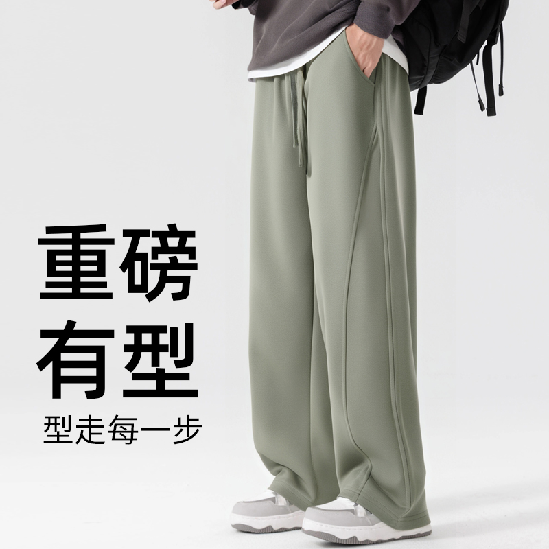复古cleanfit抹茶绿针织直脚裤 美式 男2025秋季 班尼路重磅弯刀裤