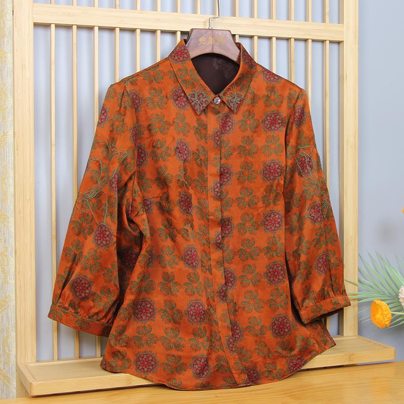 新中式 印花复古上衣真丝正品 女春夏新款 宛香丝桑蚕丝香云纱衬衫