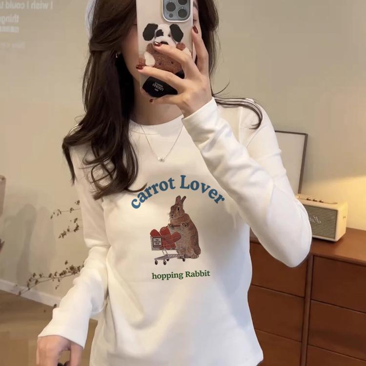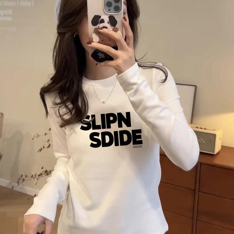纯棉上衣 加绒内搭打底衫 白色正肩圆领显瘦长袖 t恤女2025早春新款