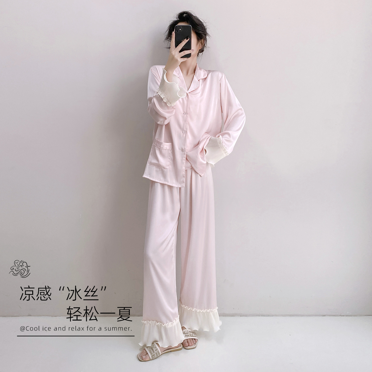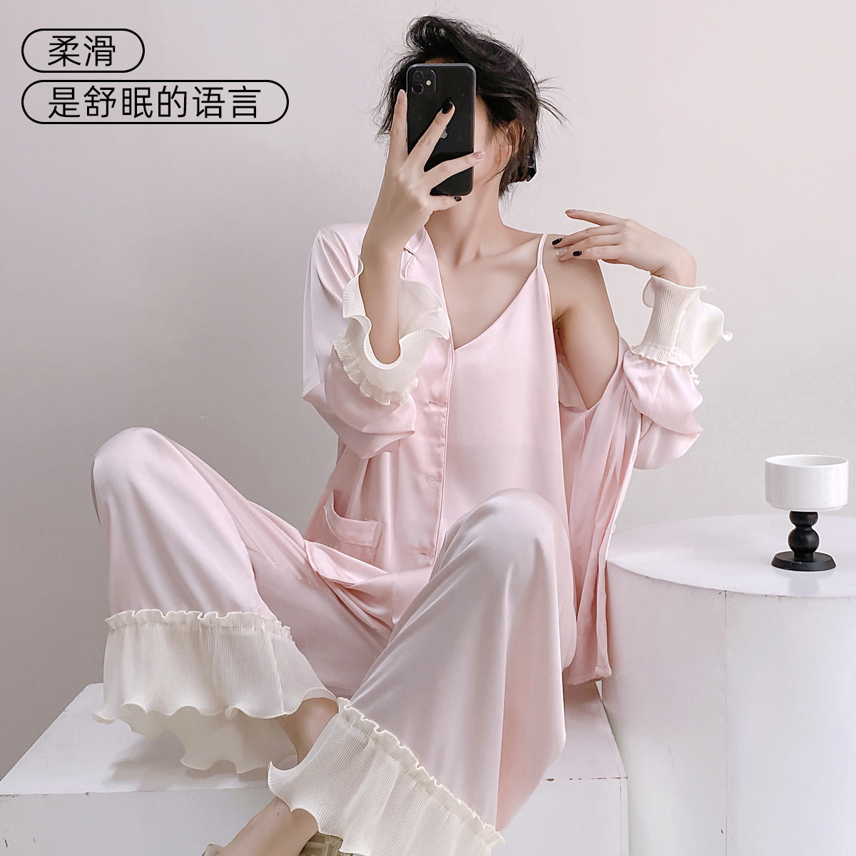 可外穿家居服三件套装 冰丝睡衣女春秋款 夏季 长袖 高级感2025年新款