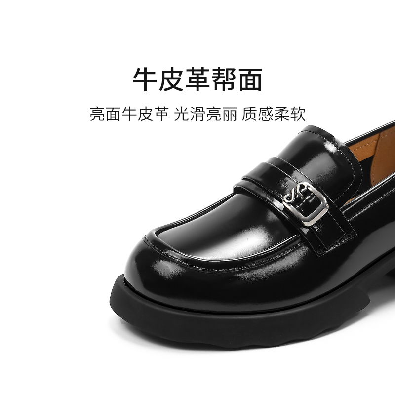 女2025春季 一脚蹬单鞋 新款 黑色小皮鞋 HS253012 时尚 哈森厚底乐福鞋