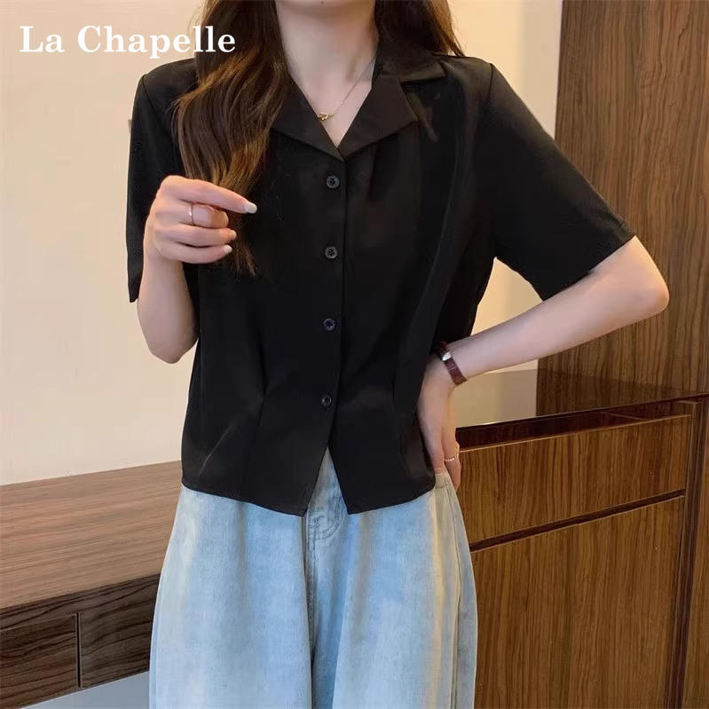 胖mm宽松显瘦短款 拉夏贝尔法式 女夏季 衬衫 上衣 白色Polo领正肩短袖