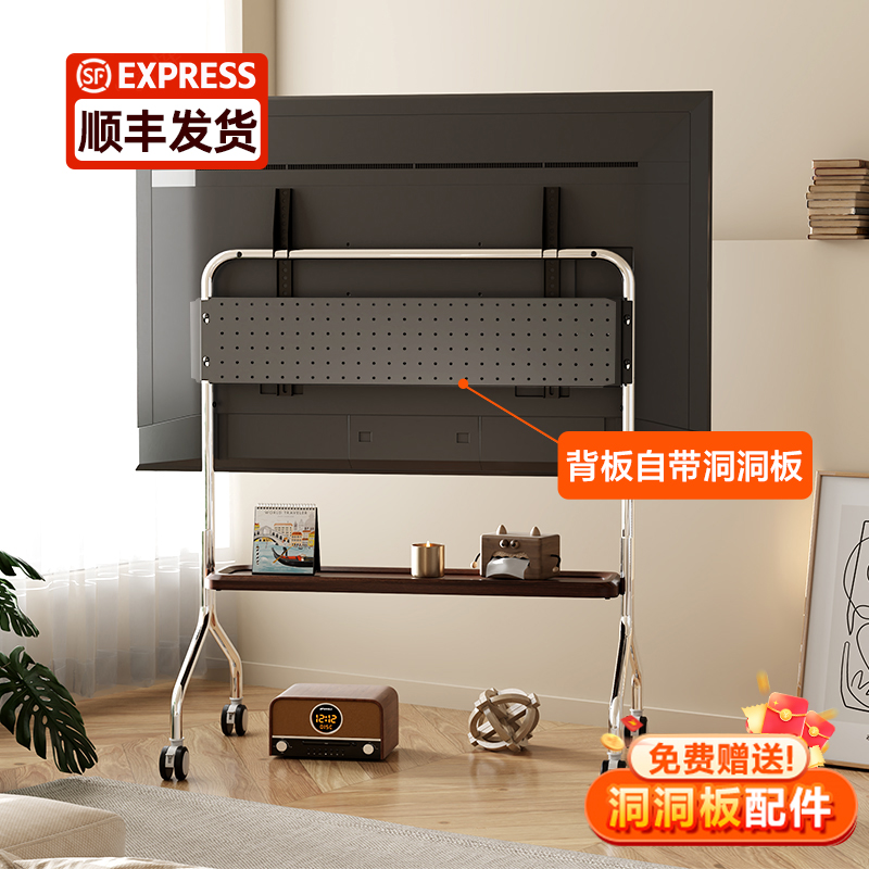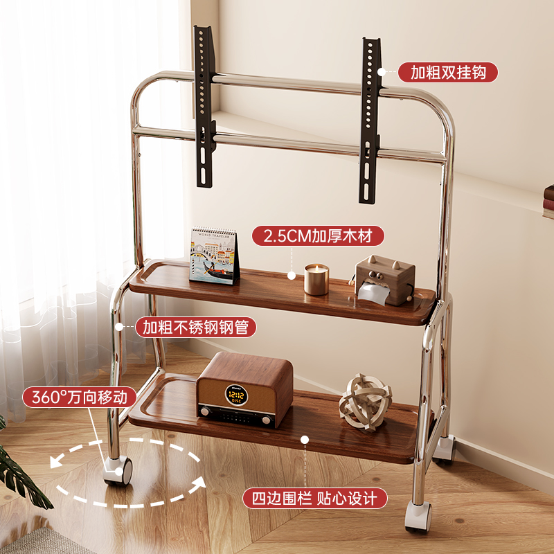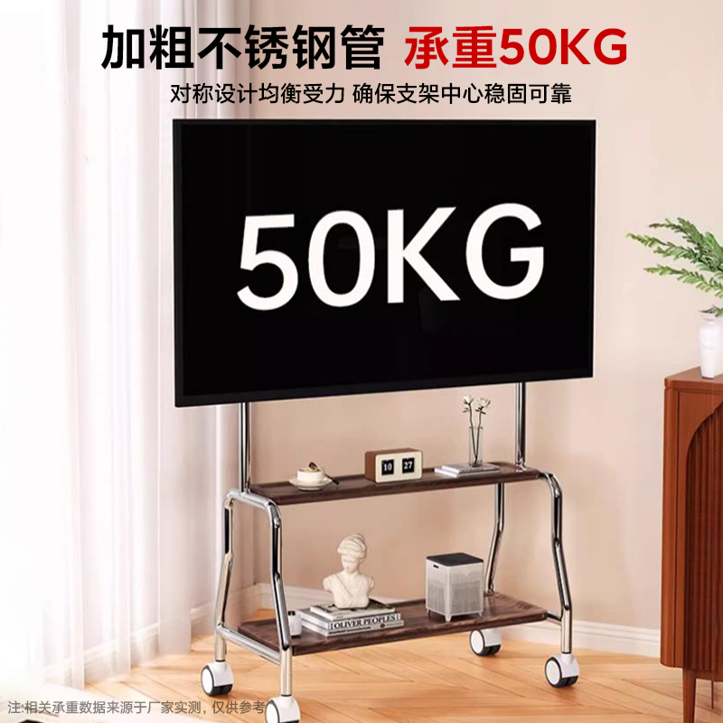 75寸挂架置物架 电视机可移动落地支架立式 不锈钢带轮推车55