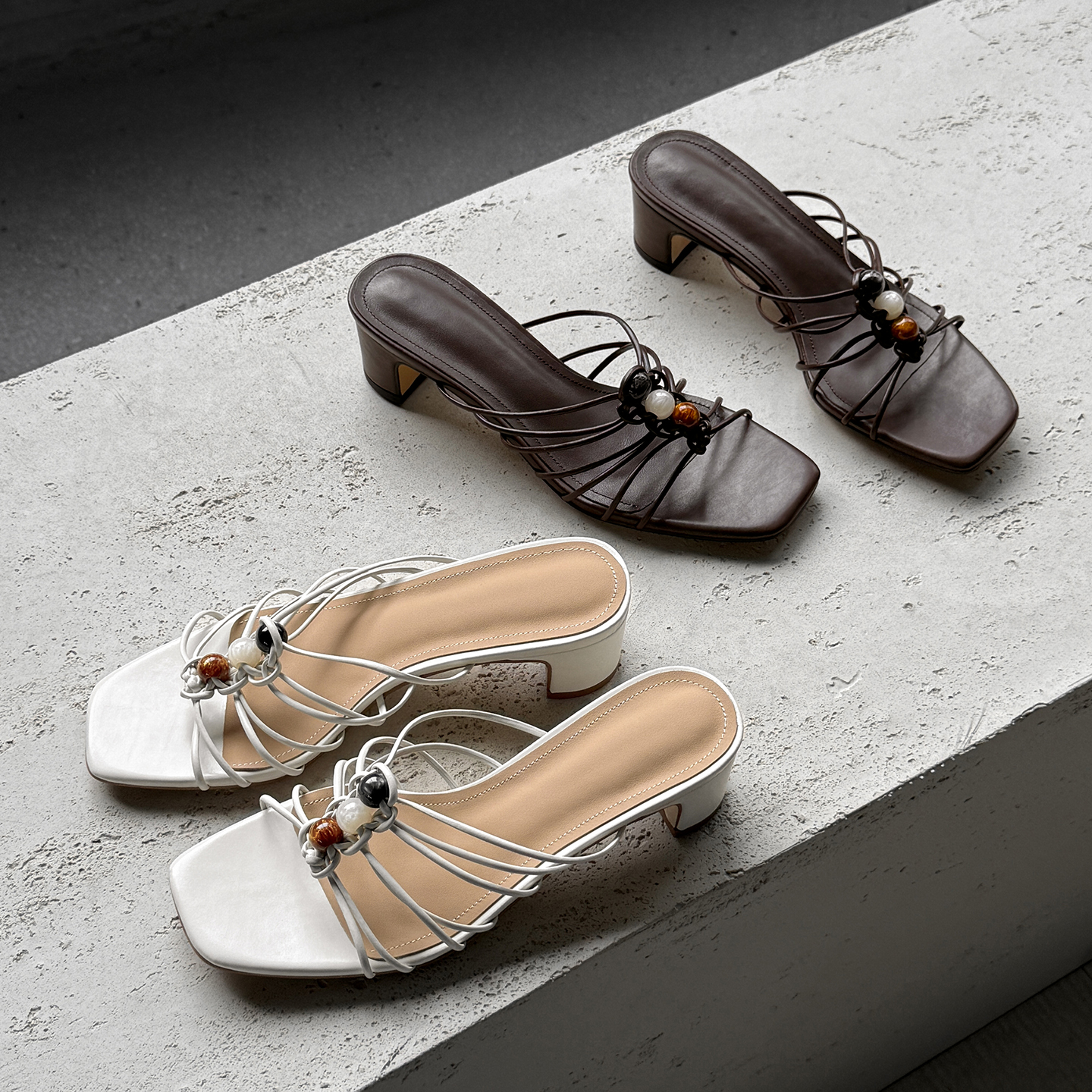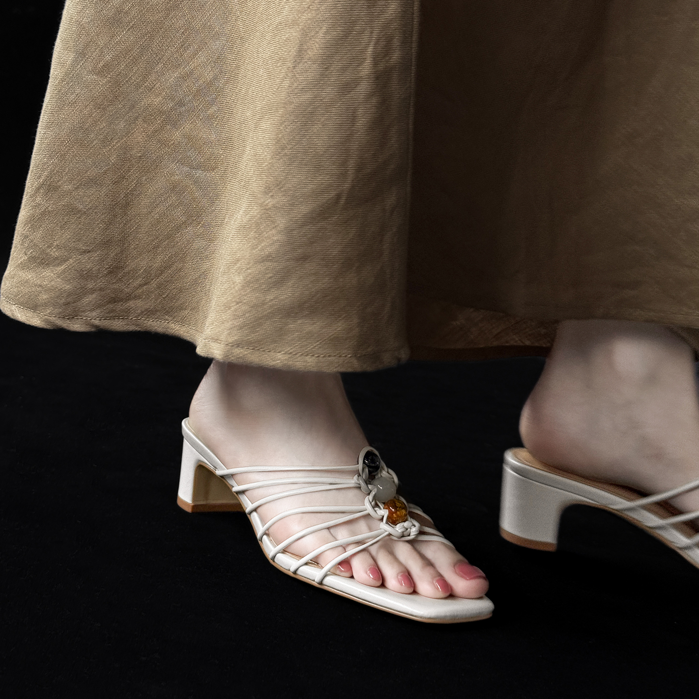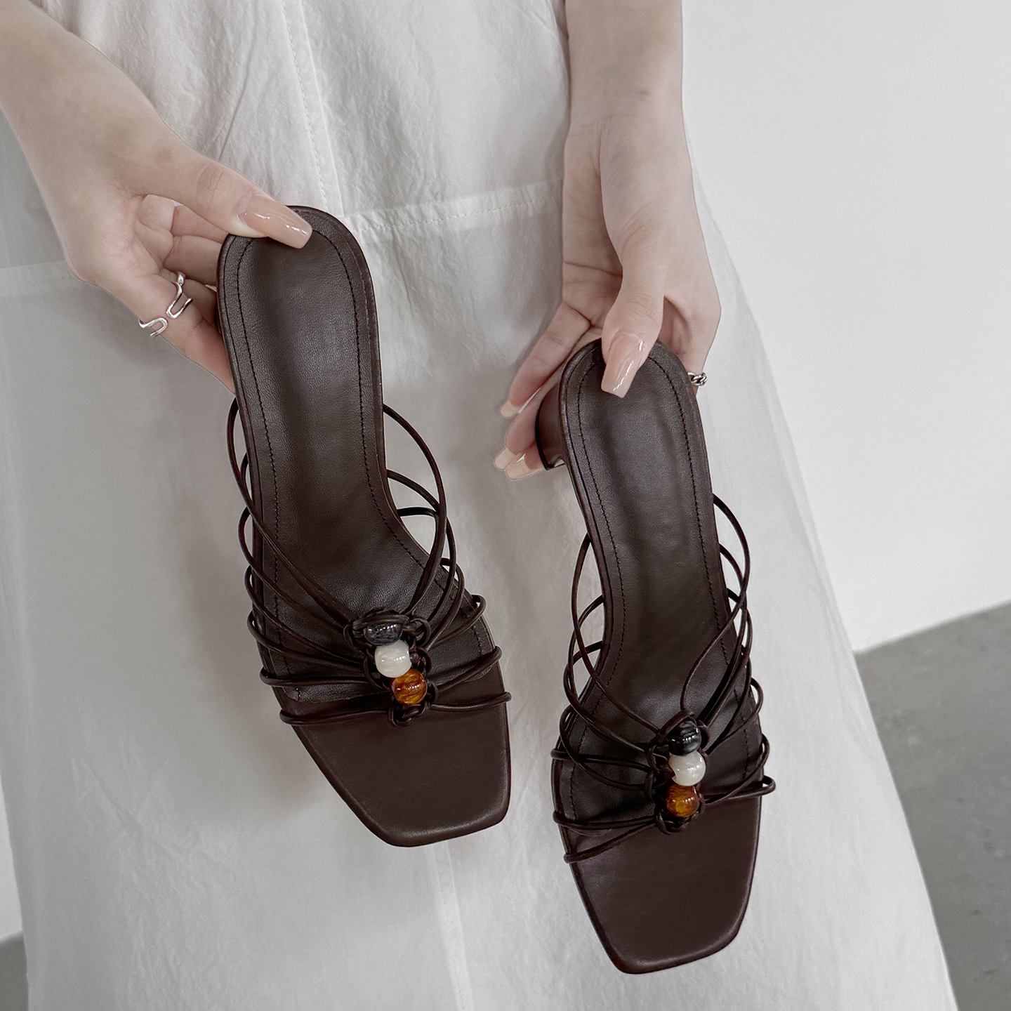 外穿拖鞋 开怀依足董洁同款 串珠镂空编织粗跟凉鞋 新款 女 2025年夏季