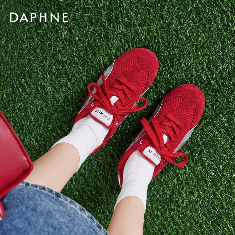 女经典 芭蕾透气网鞋 超火2025新款 薄底运动鞋 秋季 达芙妮红色德训鞋