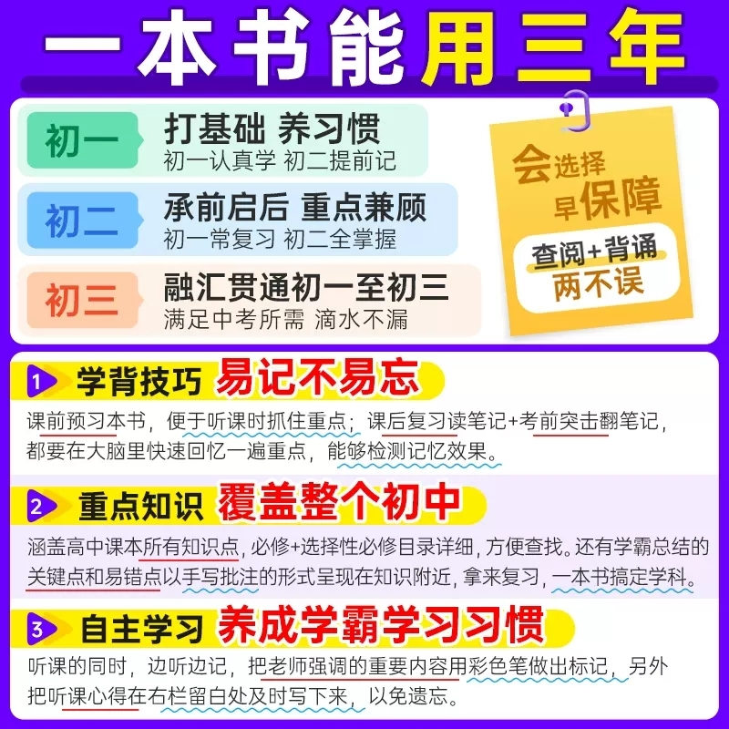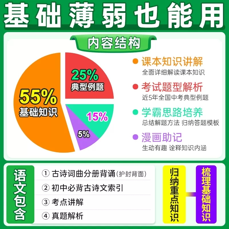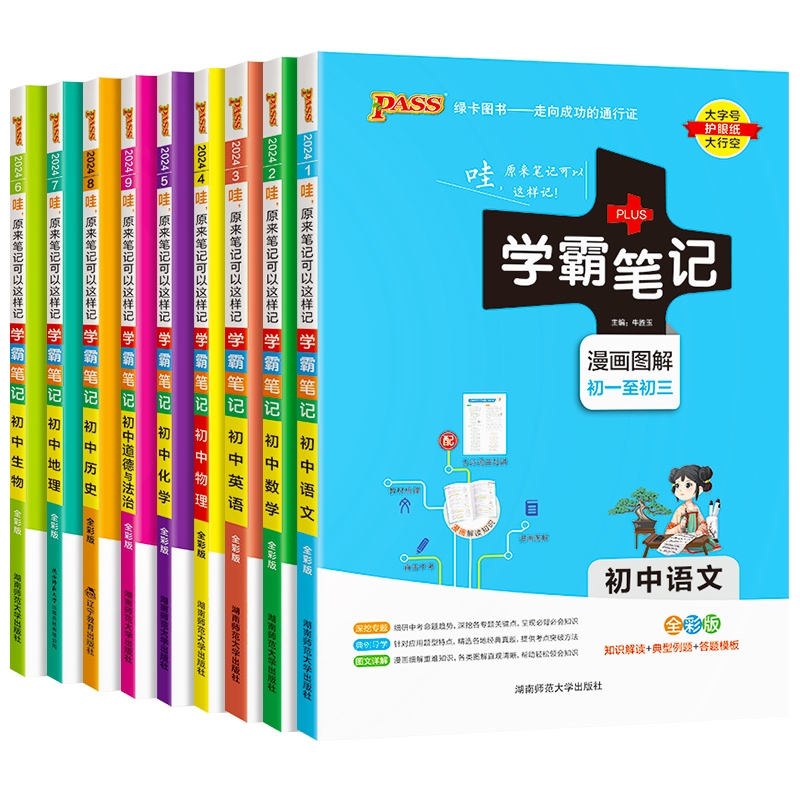 绿卡选择性 教辅书新版 初中学霸笔记2025版 PASS全套9本语文数学英语物理化学生物地理道德与法治历史初一初二初三七八九年级人教版