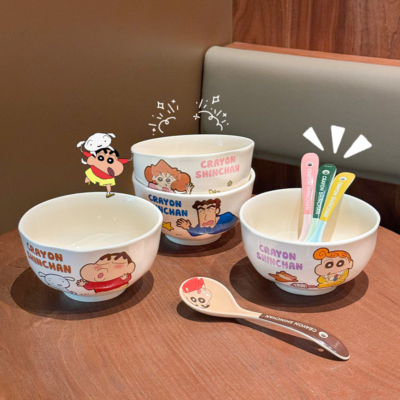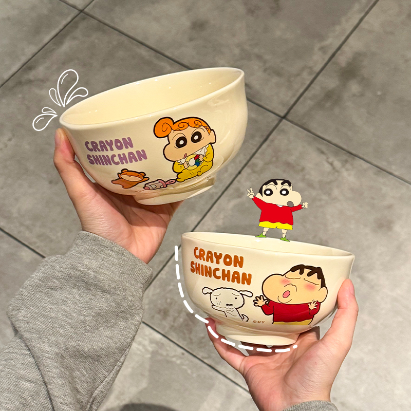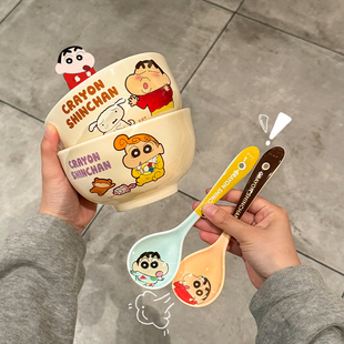 陶瓷饭碗家用儿童碗可爱餐具个人专用碗具 摩登主妇&蜡笔小新