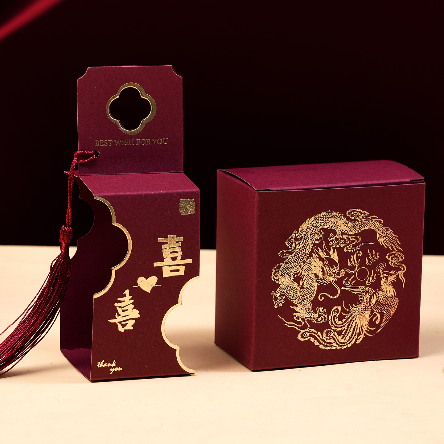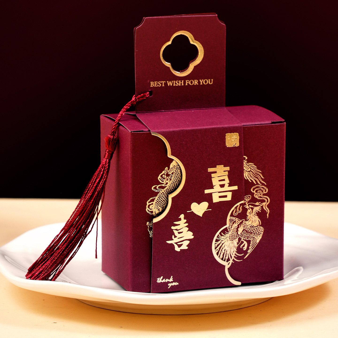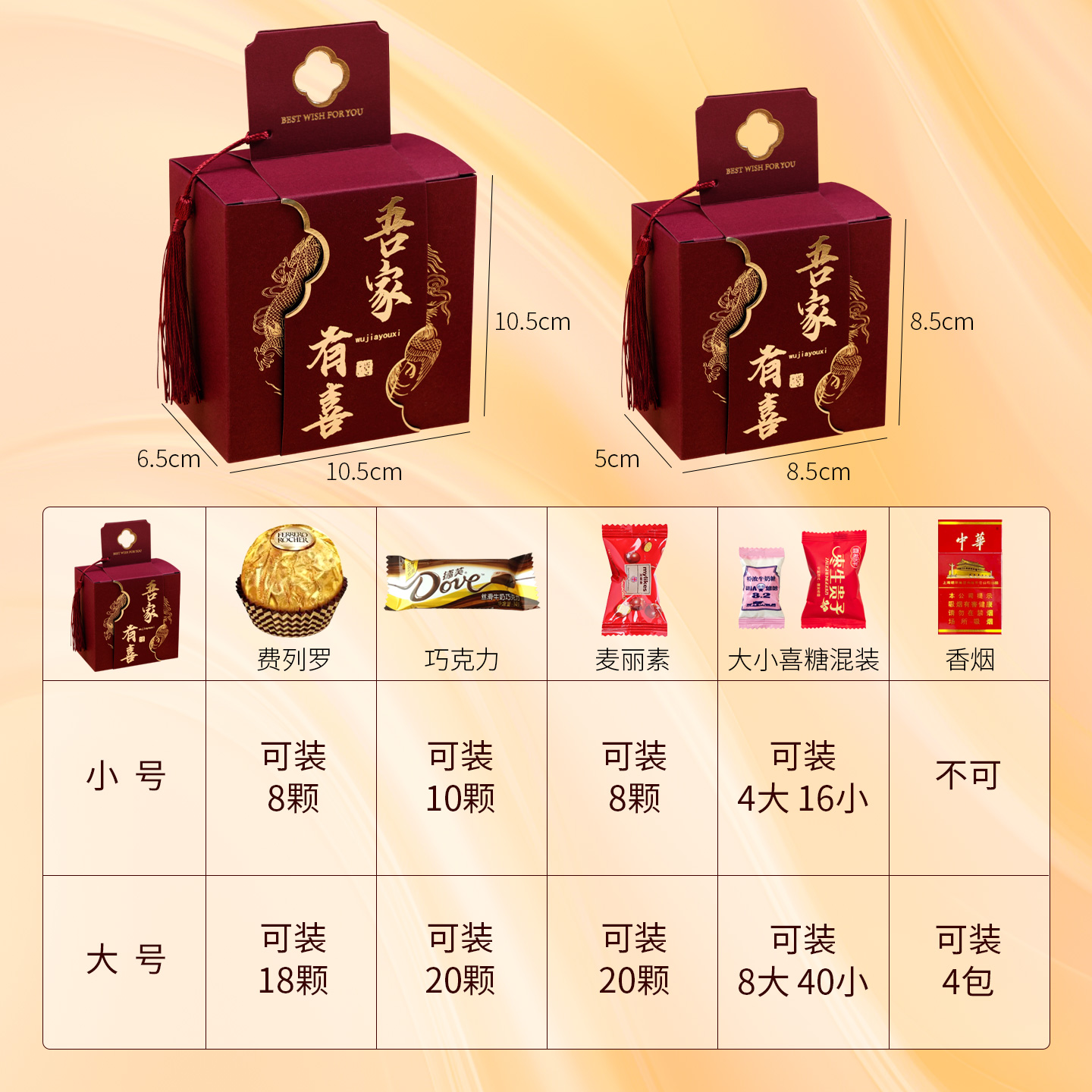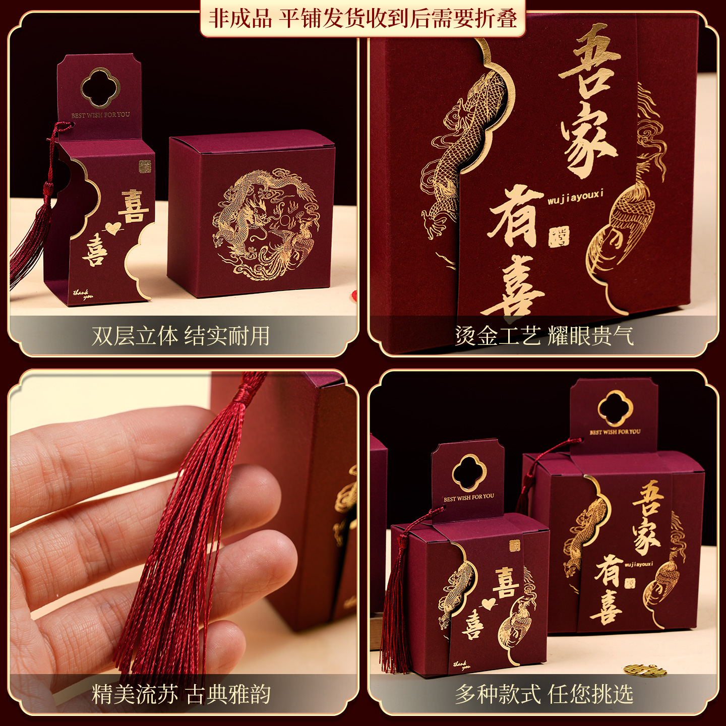 红色拉菲草结婚喜糖盒礼物盒伴手礼喜庆装 饰配件拉菲草填充物