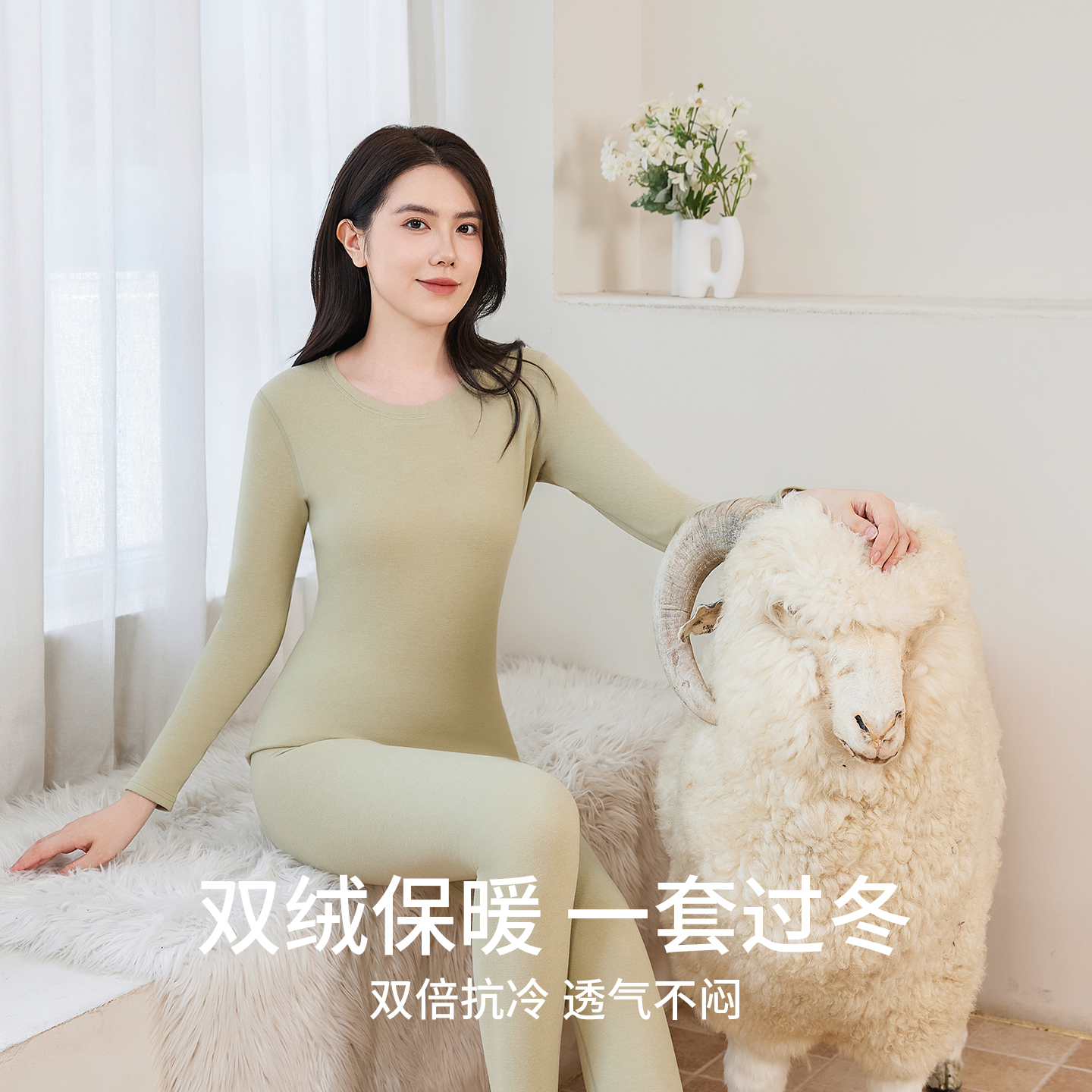 加绒德冬季 羊毛蚕丝发热女士打底薄款 套装 雅鹿保暖内衣女秋衣秋裤