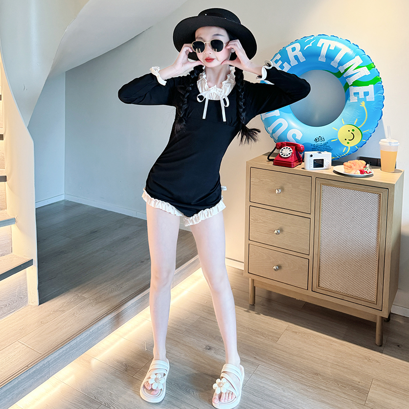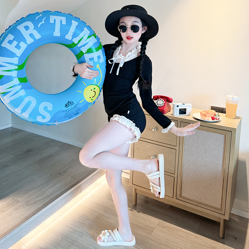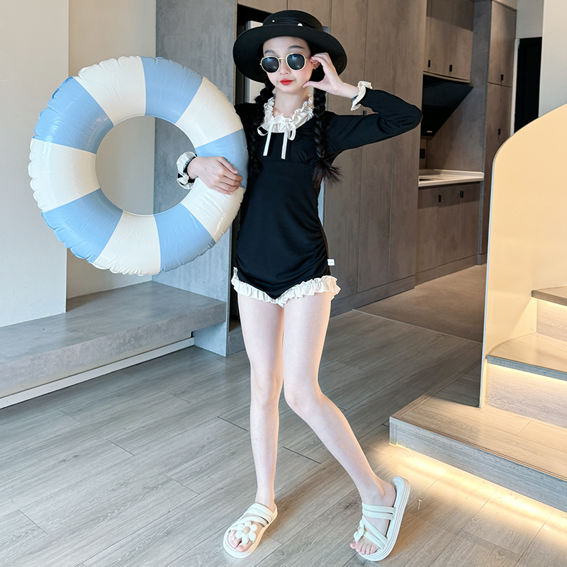 泳装 儿童连体长袖 大童女孩网红高颜值游泳衣 2025新款 女童泳衣夏季