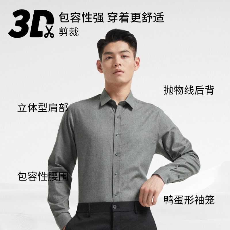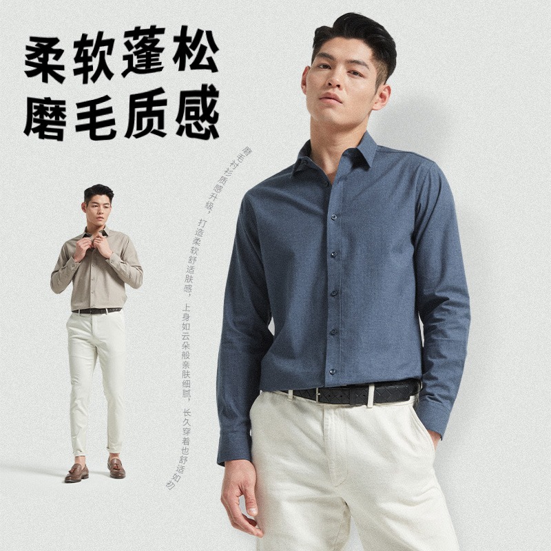 可机洗羊毛衬衫 长袖 九牧王男士 微弹商务正装 衬衣 2025秋冬新款