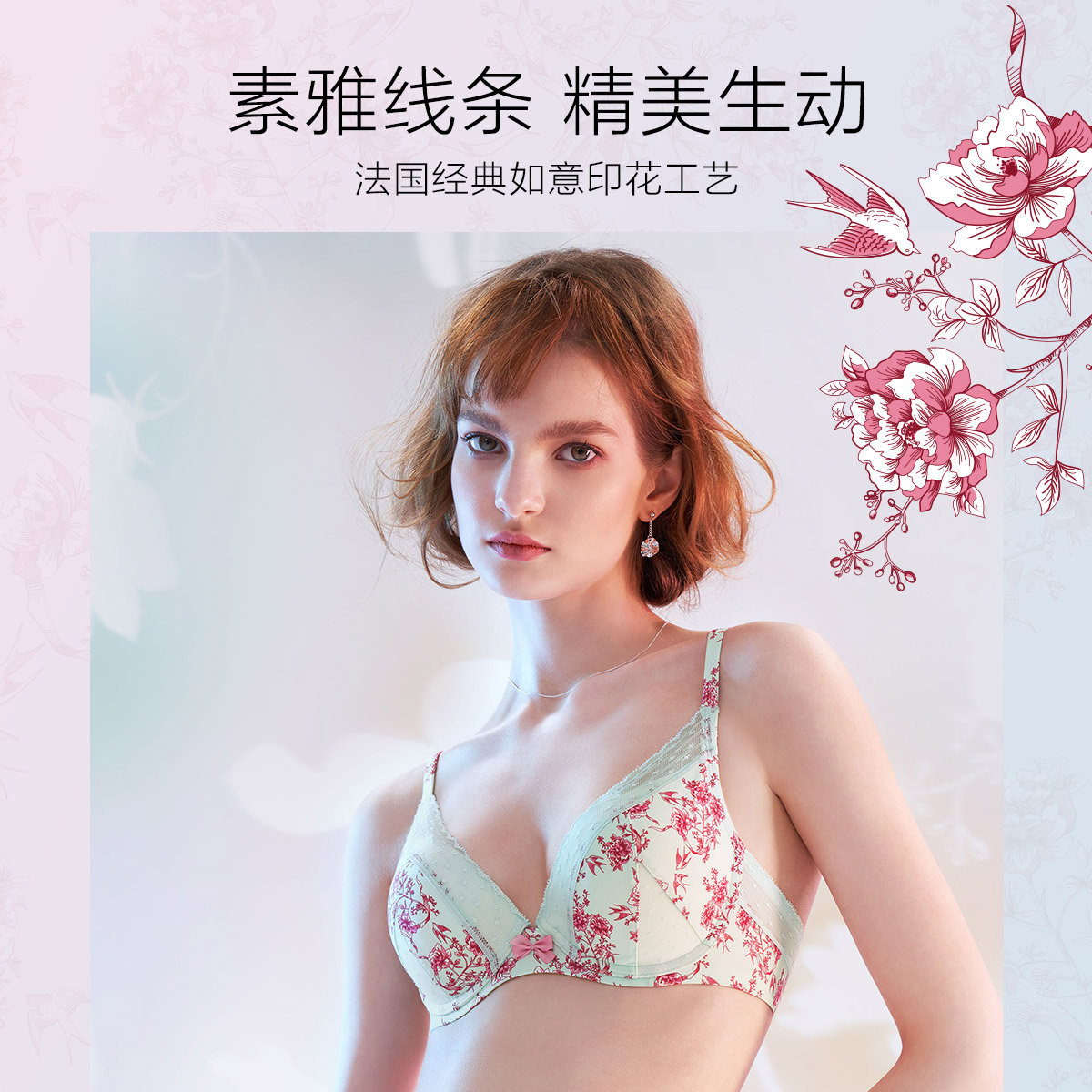 印花文胸带钢圈小胸聚拢上托内衣女 安莉芳官方奥莱时尚 立体围