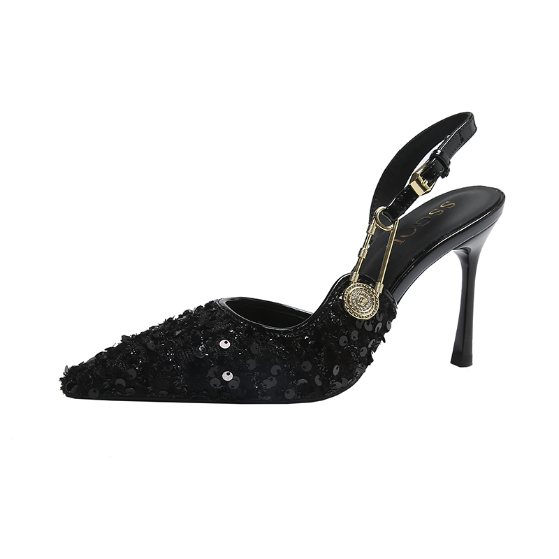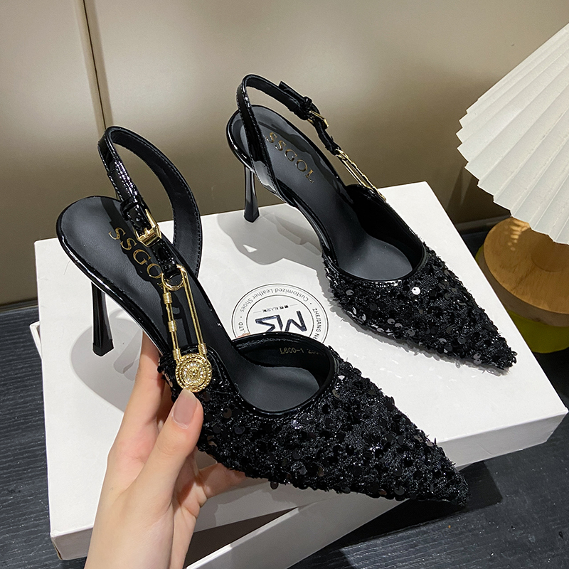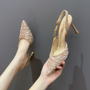 新款 单鞋 凉鞋 女气质时尚 女包头侧空一字带细跟方头高跟鞋 2025夏季