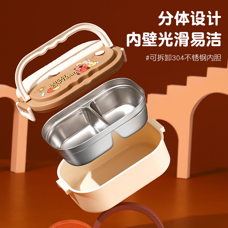 304不锈钢保温饭盒小学生专用便当盒卡通餐盘儿童分格餐盒女孩萌R